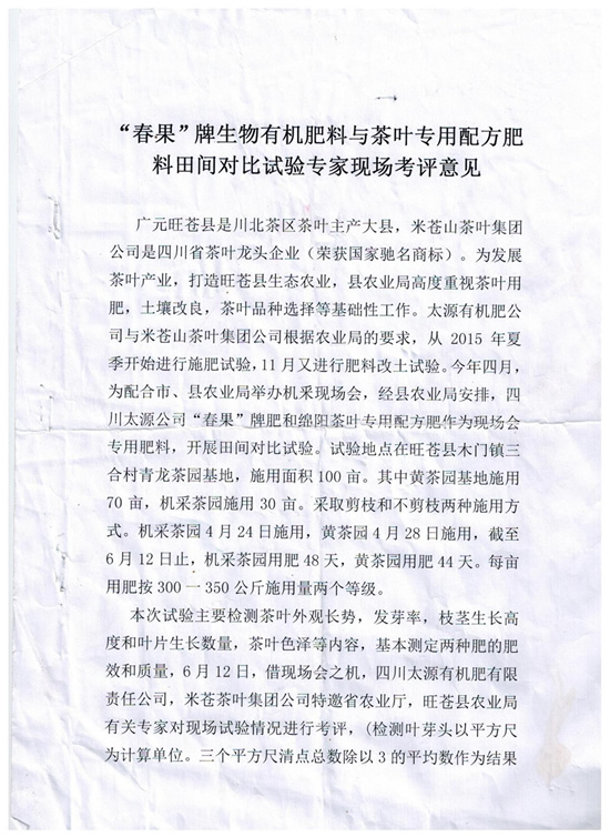 多功效生物有机肥料试验情形,,,,,,能快速改良被污染的土壞,,,,,,解决农村禽畜粪便的情形污染,,,,,,降解农残包管食物安 全,,,,,,完全可以替换化肥,,,,,,镌汰和阻止对土地的化学污染,,,,,,大幅镌汰作物病虫害、镌汰农药使用量从而镌汰农药对土地和食物的污染。。。。。这一产品在阿坝、西昌、浦江等地3600亩农田的使用,,,,,,并经相关行业*和用户历时三年多的验证,,,,,,获得认可。。。。。现已被四川省治理荒原化基金会和阿坝州政府作为治理草原沙化、退化的专用肥料。。。。。对此,,,,,,电视台已作多次专题釆访和报导。。。。。